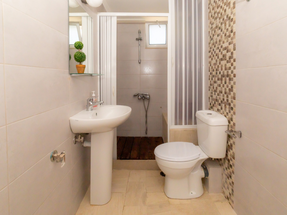 Το διαμέρισμα / σπίτι βρίσκεται στο υπερυψωμένο (10 σκαλοπάτια) ισόγειο του κτηρίου, έχει θέα στον μπροστά κήπο και λίγο στην θάλασσα, είναι διαμπερές κ αποτελείται από: 2 υπνοδωμάτια (1 με ένα διπλό κρεβάτι και 1 με 2 μονά κρεβάτια), κουζίνα-σαλόνι, μπάνιο και μπαλκόνι (περιμετρικά του σπιτιού-βεράντα Εχει 2 τηλεοράσεις, μία σε κάθε υπνοδωμάτιο και συγκεκριμένα η τηλεόραση στο δωμάτιο με το διπλό κρεβάτι είναι 39’’ smart με youtube και ενεργό Netflix. Επίσης στον ενιαίο χώρο σαλόνι-κουζίνα, υπάρχει ένας καναπές κρεβάτι.